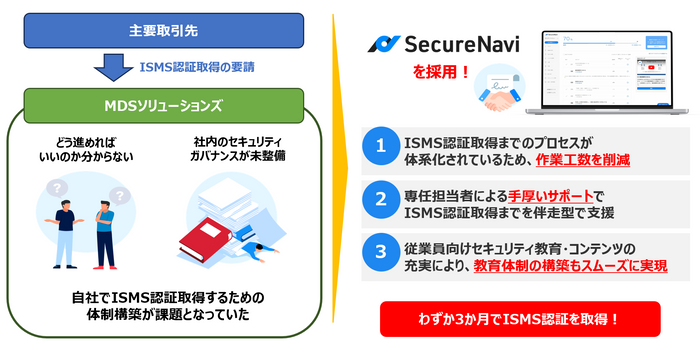 株式会社マクニカ(本社:神奈川県横浜市、代表取締役社長:原 一将、以下マクニカ)は、MDSソリューションズ株式会社(本社:神奈川県川崎市、代表取締役社長:及川 寛司、以下MDSソリューションズ)へISMS認証取得の効率化を支援するSecureNaviを提供したことを本日発表いたします。