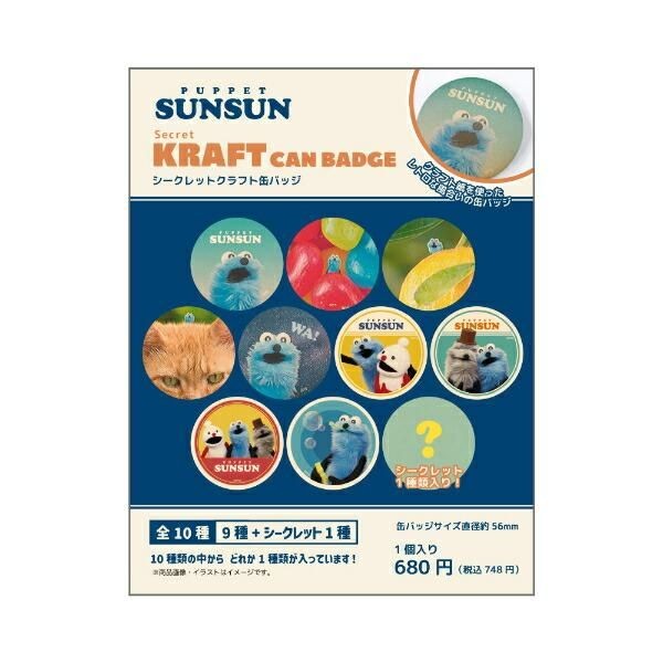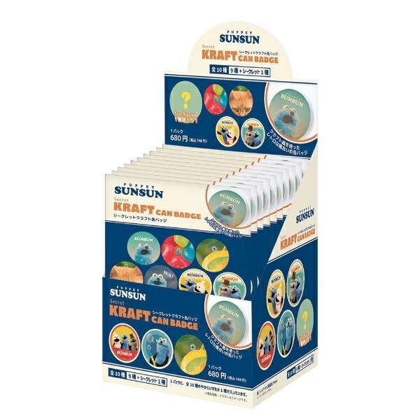 こちらはクラフト紙を使ったやさしいレトロな風合いが素敵な缶バッジのコレクション。シークレットデザインを含む10種類のデザインのコンプリートBOXです。
