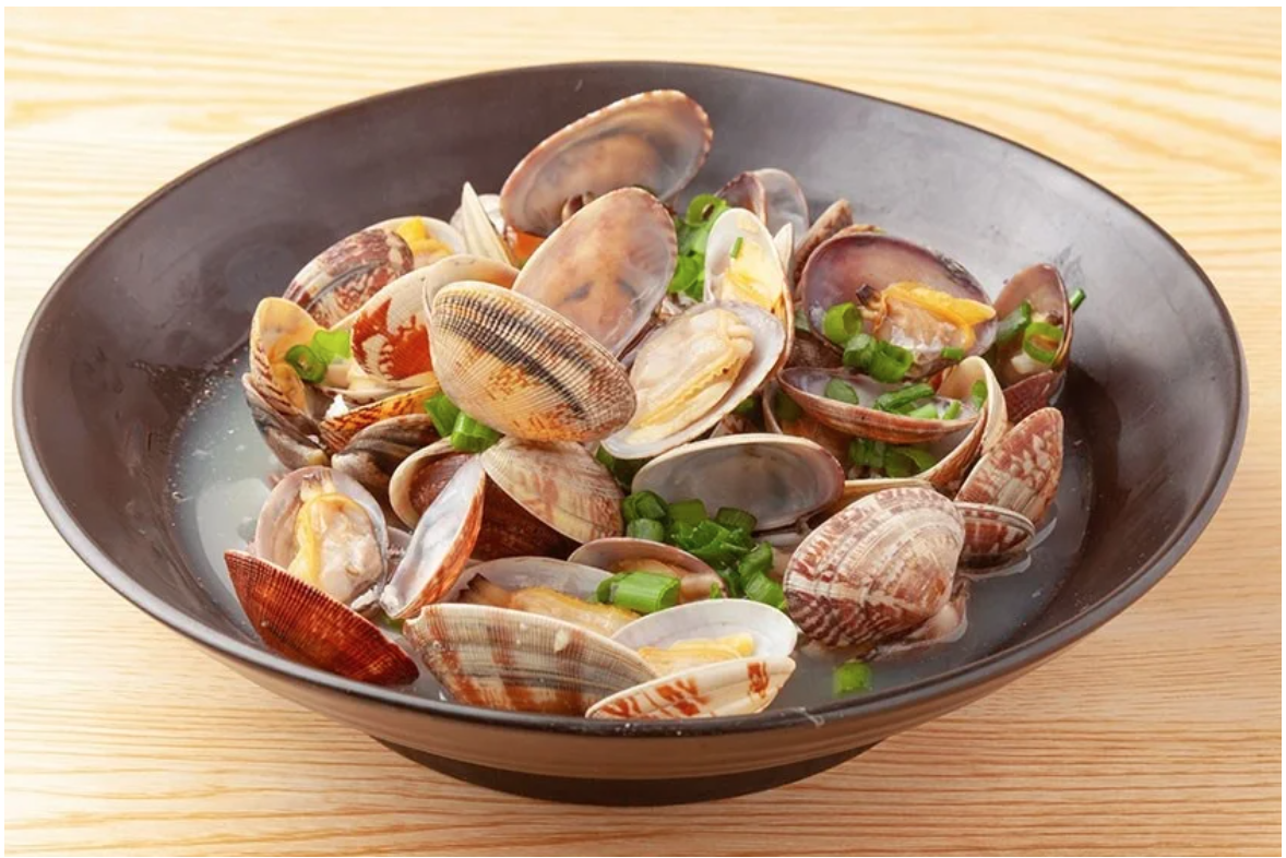 日本酒が進む「あさりの地酒蒸し」。地元香川の地酒、金陵を使ってふっくらと酒蒸しされた身はもちろん、あさりの旨味と塩味が染み出た出汁も是非味わっていただきたい一品です。