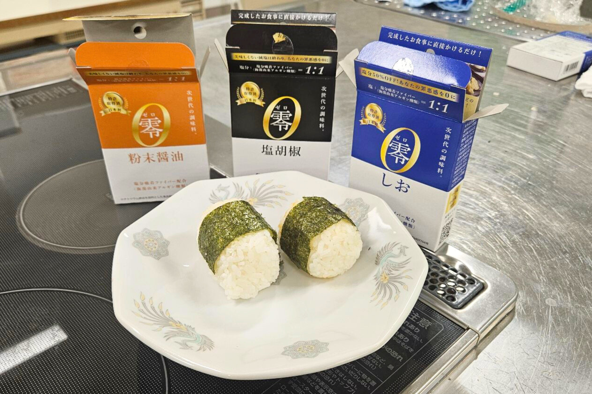 当日は当社スタッフが開発背景や技術、商品について紹介を行った後、実際に零しおを使ったおにぎりの調理・試食を行いました。