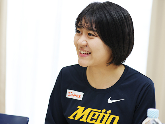 卒業後は荒井選手と同じく積水化学に進む。「私は、自分より強い選手がいる環境で強くなれるタイプなので、名城大でも、髙松さん(智美ムセンビ/昨年度卒業)や加世田さん(梨花/一昨年度卒、現・ダイハツ)たちのような先輩がいたから伸びたと思います。就職先にもそういった選手がいるのが、この進路を選んだ理由の一つです」と、自身に合った環境で競技力に磨きをかけるつもりだ。5000mを中心に、駅伝やさらに長い距離へも取り組みたいと話した。