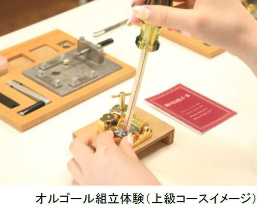 オルゴール職人のサポートのもと、自分だけの音色のオルゴール作りが体験できます。お好みの曲、ケース、コース(一般コース、上級コース)を選んで、完成したオルゴールは持ち帰りできます。春から初夏にぴったりのデコレーション小物もご用意しています。