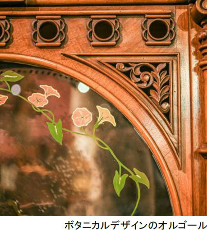 自動演奏楽器には、西洋家具のように彫刻や絵などがデザインされたものがあります。写真をヒントにボタニカルデザインの自動演奏楽器を探し、植物と装飾デザインの関わりを知ることができる企画です。