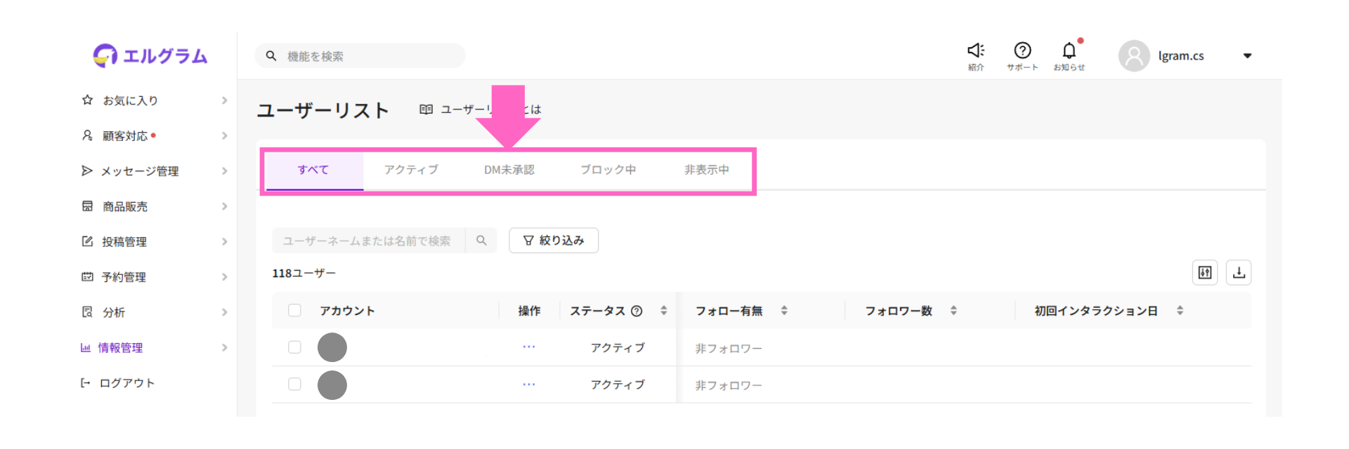 株式会社ミショナはInstagram(インスタ)拡張ツール「エルグラム」のユーザーリストに、ユーザーの状態に関わらず全ユーザーを表示できる「すべて」タブを新たに追加し、管理性をさらに高めました。