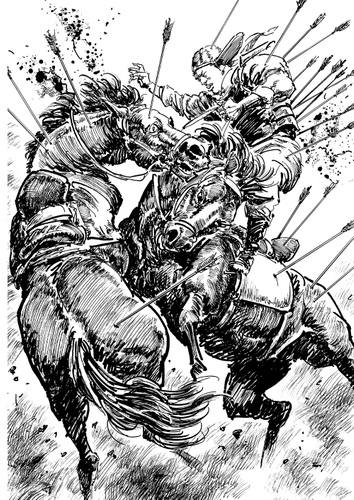 西暦1258年、 ペルシャ高原の小都市【ビジャ】を、【ラジン】率いる蒙古軍の支隊が包囲した。世界の半分を制圧した最強騎兵は総数2万、 対するビジャの人口はわずか5千人である。陥落目前のビジャは【オッド姫】の救援要請に駆けつけた【インド墨家・ブブ】により何とか持ちこたえていた。
