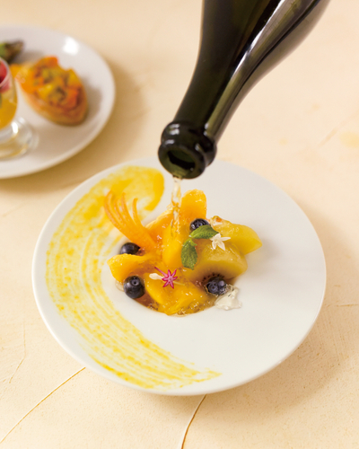 内容 : <上段>フレッシュフルーツとシャンパンジュレ “エディブルサングリア”
