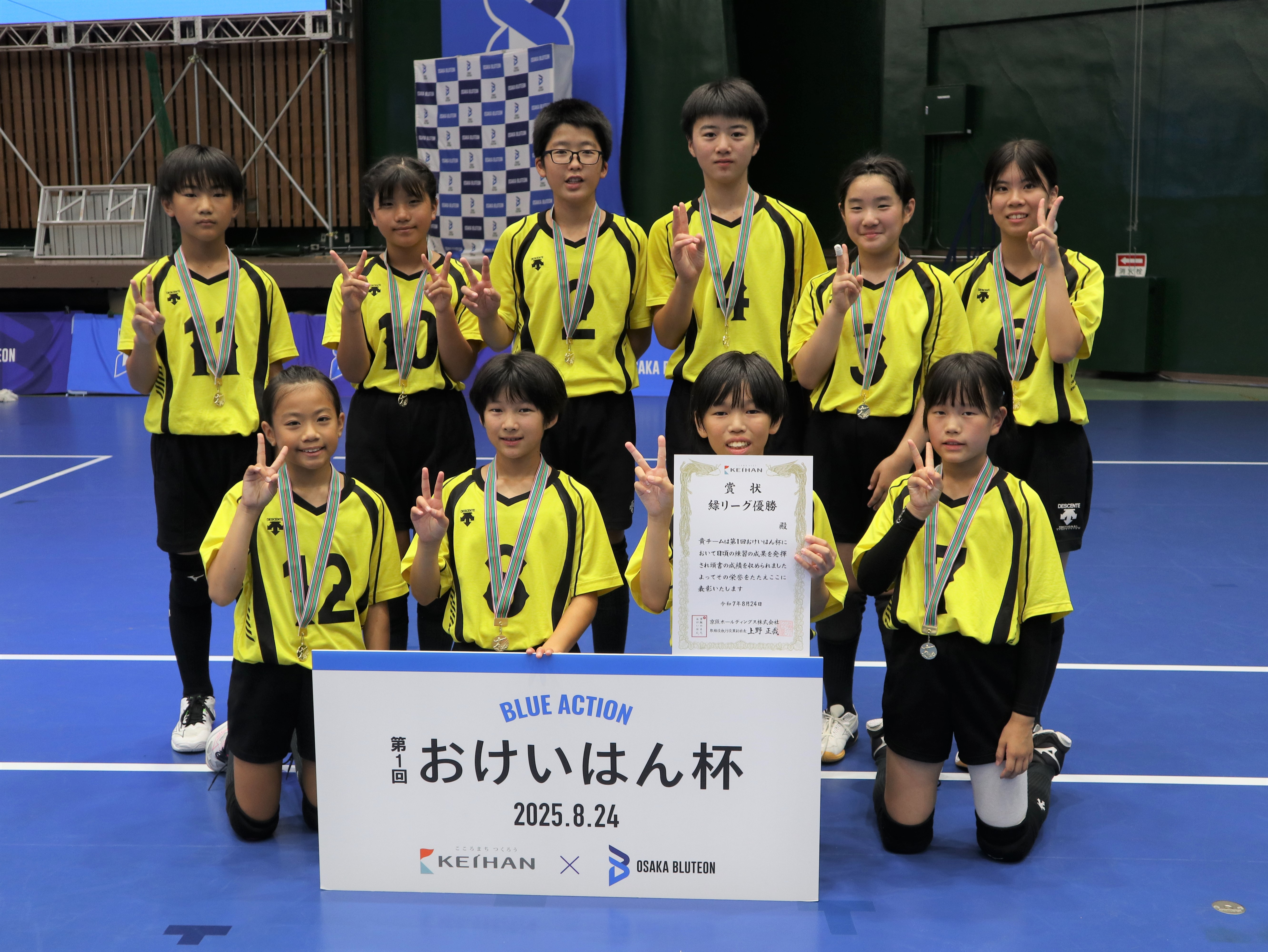 また、京阪ホールディングス株式会社から参加者全員への「第1回おけいはん杯」の開催を記念したTシャツや京阪電車・大阪ブルテオンコラボグッズが配付され、チームで最も活躍したMIP選手には大阪ブルテオンの2025-26シーズンのレプリカユニフォームに本人の名前と背番号が入った特製ユニフォームが今後贈呈される予定です。さらに各チームには株式会社ミカサ協力のもと大会記念ボールも進呈されました。その他、本大会の総合優勝チームには、副賞として大阪ブルテオンのホームゲームで開催される「京阪コラボデー」での始球式への登壇権が授与されました。