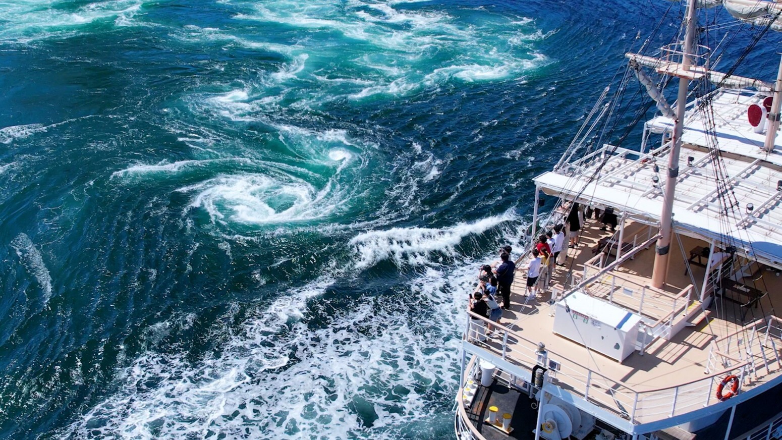 世界最大級の渦潮を「咸臨丸」「日本丸」の大型帆船で体験する約1時間のクルージングです。全便に船上ガイドが乗船し、船からの景観や淡路島の歴史、旬の観光情報などをお届けし知的欲求も満たすことができます。