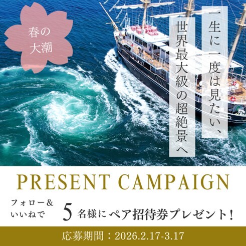 賞品 :うずしおクルーズ ペア乗船招待券(5名様)