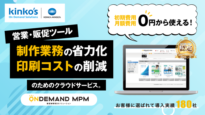 キンコーズ・ジャパン株式会社(本社:東京都港区、代表取締役社長:渡辺 浩基、以下 キンコーズ)は、2022年2月16日(水)〜18日(金)に開催される、オンライン展示会「第2回 マーケティング・販促サミット」の営業支援カテゴリに『オンデマンドMPM(Marketing Print Management)』を出品します。 この展示会は、あらゆる販促製品・マーケティング・営業支援サービスを対象とした、BtoB向けオンライン展示会です。
