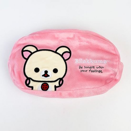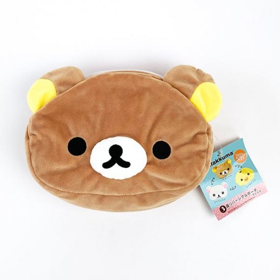 リラックマフェイスが、そのままポーチになったリバーシブル3面ポーチもご用意しました♪バッグから取り出すたびに和んでしまいそうです。サイズは12cm×20cm、コスメポーチや小物入れにどうぞ♪