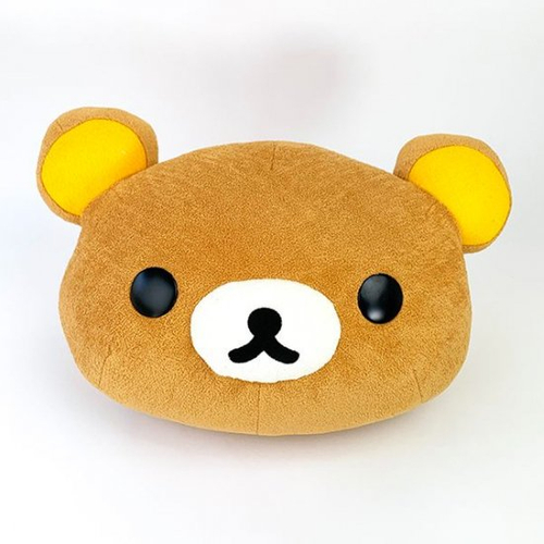 こちらは「リラックマとカオルさん」作中のリラックマを再現したフェイスクッション。作中のリラックマはリアル感があって、本当にそこにいるみたいですよね!そんな雰囲気をクッションで表現しました。