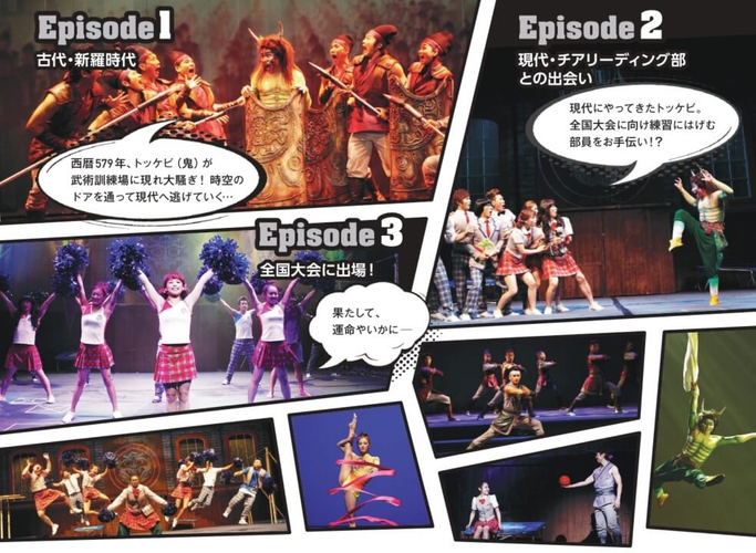 物語は、古代・新羅時代の武術訓練場からスタートします。そこに突如現れた鬼<トッケビ>と、それを追いかける若き青年リーダー<花郎(ファラン)>。彼らは“時空の扉”を通って、現代・韓国へタイムスリップ!全国大会を目指し、練習中の「新羅高校」弱小チアリーディング部の前に突如姿を現した鬼に、生徒たちは魔術を掛けられ、飛んだり、跳ねたりの大騒動!果たして生徒たちの運命は…!?