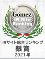 当社は、2020年12月に実施したコーポレートサイトリニューアルにあわせ、IRサイトを一新しました。結果、全上場企業ホームページ充実度ランキングは、2020年度優秀サイトからランクアップし、最優秀サイトを受賞しました。また、Gomez IRサイトランキング2021は、東証2部上場企業1位となりました。