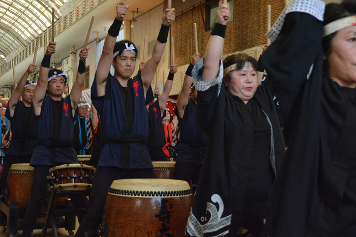 今治地区としまなみ海道沿線の地域に伝わる和太鼓の共演。様々な技を駆使した勇壮で華やかな演舞は観客を圧倒します。