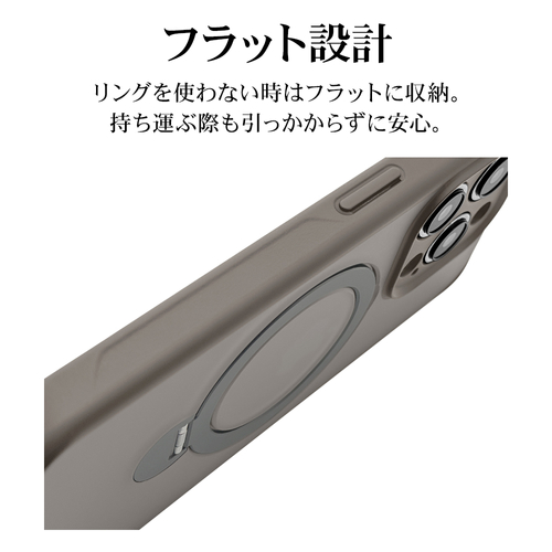 指が通せて操作安心、120度開閉&360度回転でお好みの角度に調整可能な、MagSafe対応リング付き。