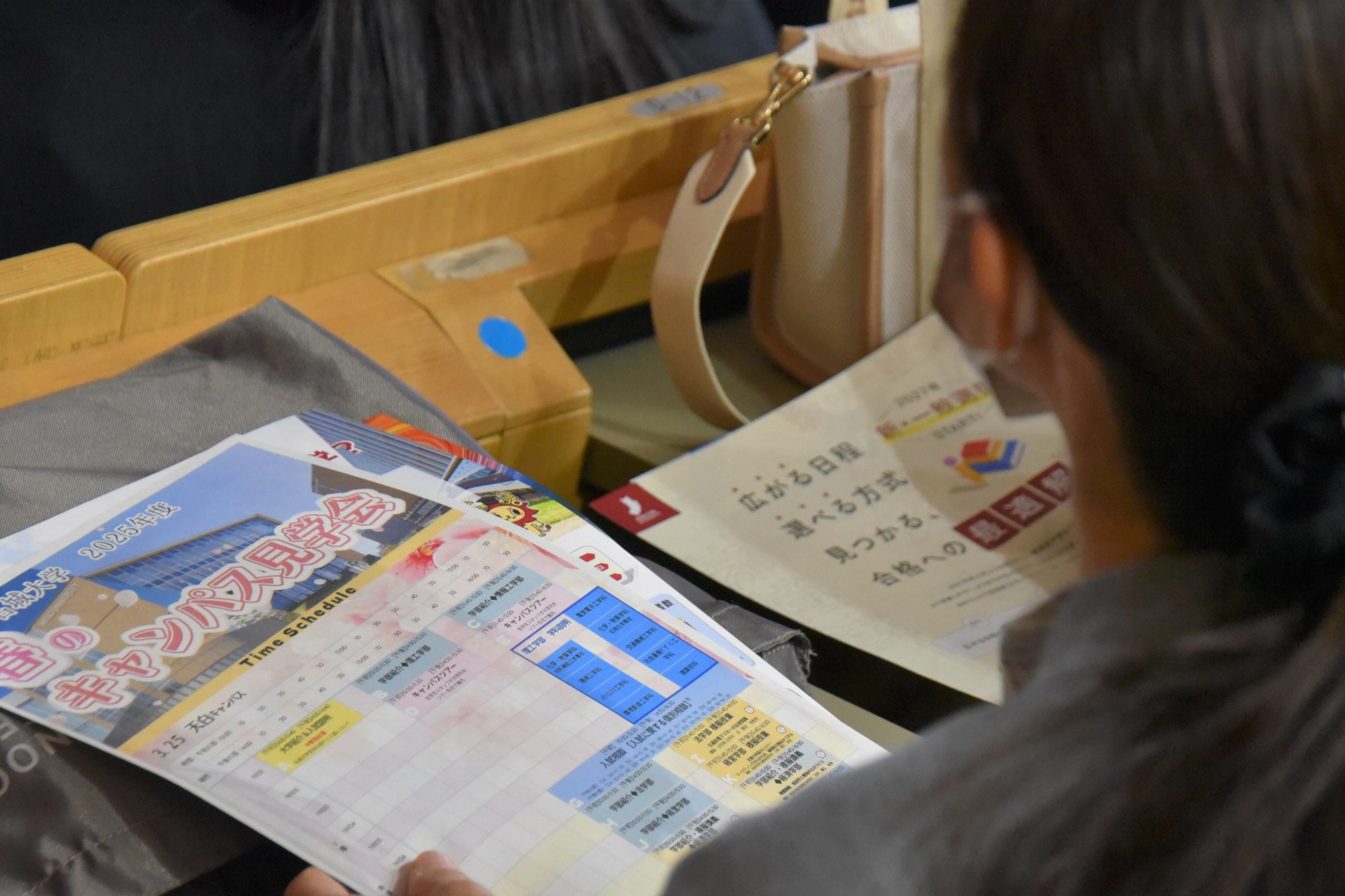 春のキャンパス見学会は、進学を考えている高校生に春休みを有効活用して志望校選びに役立ててもらおうと、2024年から毎年開催しています。名城ホールでの全員参加の大学紹介と入試説明に続き、各学部の紹介や文系学部の模擬講義、学生スタッフの案内で主な施設を巡るキャンパスツアー、入試に関する個別相談を用意しました。