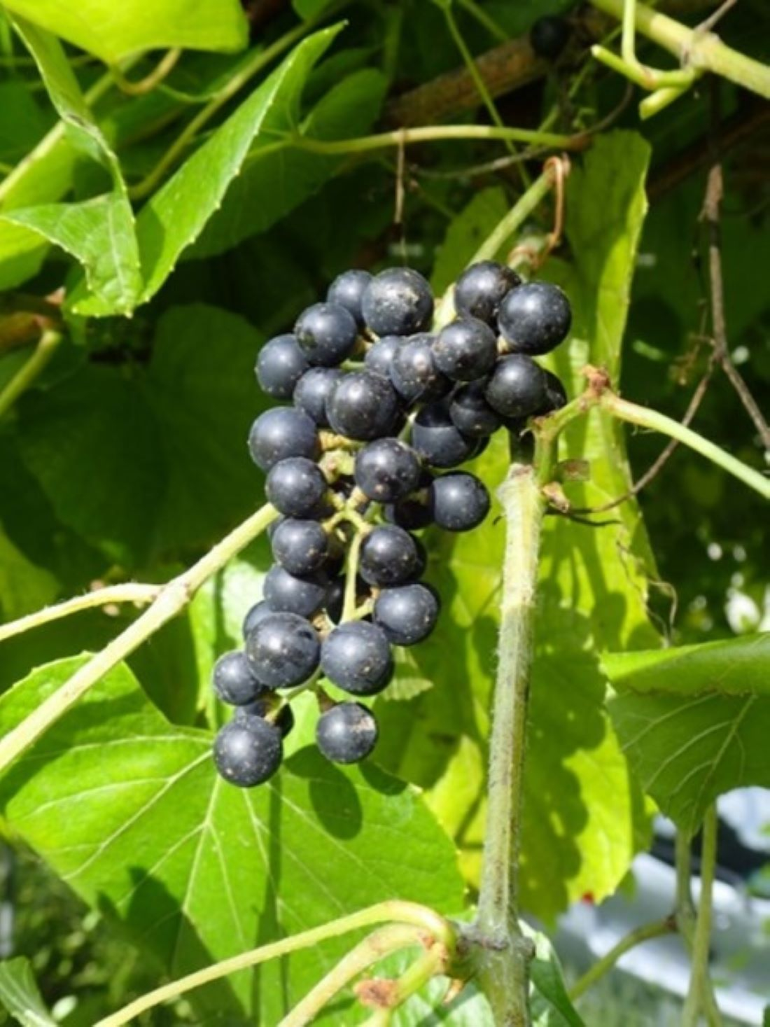 2022年秋には、交雑株がブドウの房をつけた。雑種株はシラガブドウに近いものから、マスカットに近いものまで様々な形態を持った株が得られた。それらの中から、果実が黒色で新品種候補となる複数の系統からワインの試験醸造を行うことができた。まだ新品種の選別まで至ってはいないが、数年中には新品種を世に出すことを計画している。
