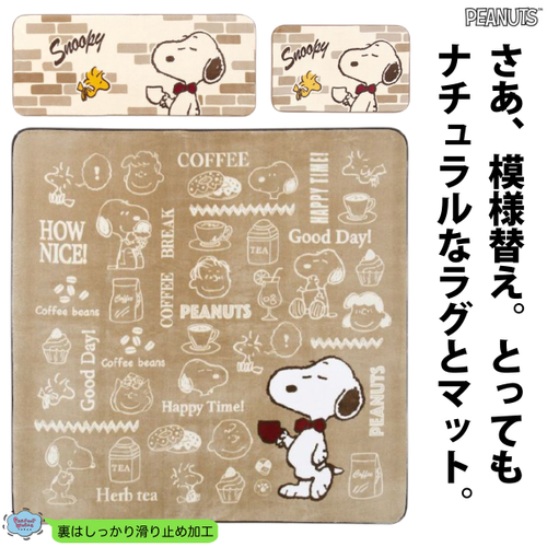 スヌーピーから、インテリアグッズのご紹介です。ふわふわな感触が気持ちいいマットには、スヌーピーのティータイムのイラストがデザインされています。ベーシックなベージュ系で、お部屋にもしっくりなじむこと間違いなし。早速ご紹介していきます。