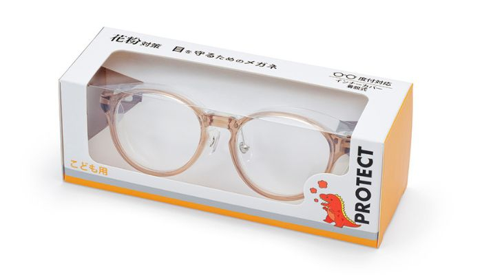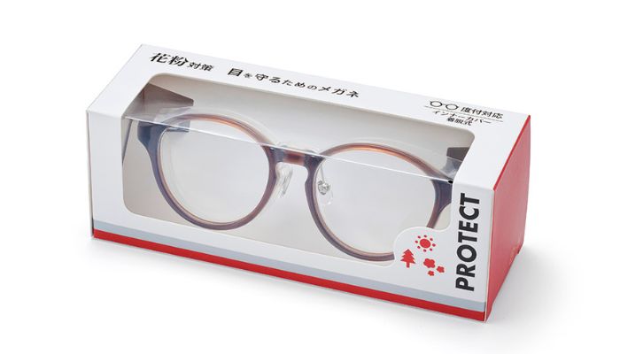 外ではフードをつけて花粉対策、屋内では取り外して普段のメガネとして使用することが可能です。
