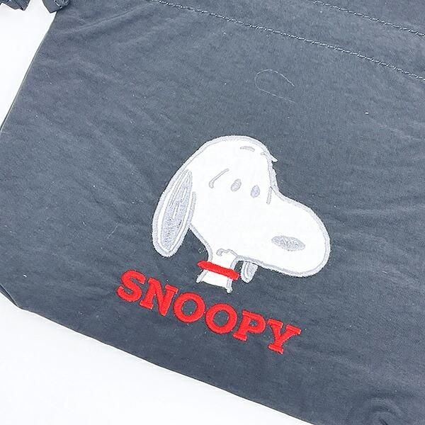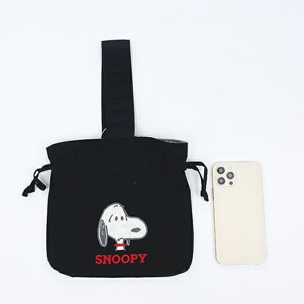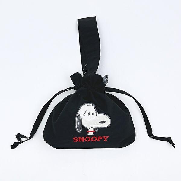 こちらが、フロントにスヌーピーのアップリケ刺繍があしらわれた **スヌーピー 巾着バッグ** です。