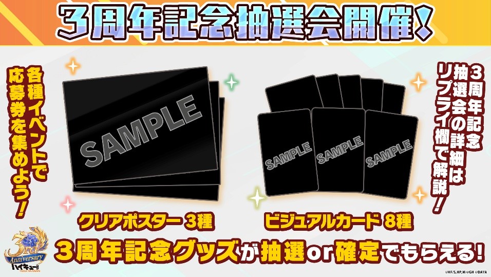 3周年ビジュアルを使用した『3周年記念クリアポスター』または『3周年記念ビジュアルカード』を合計210名様にプレゼントいたします!