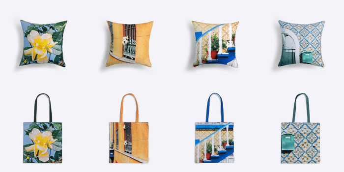 ロンドンやマドリードのどこか懐かしい雰囲気が残るノスタルジックな日常をおさめた、厳選4作品12アイテムを春のインテリアやおでかけに使えるクッションとフラットサブバッグにデザインしました。