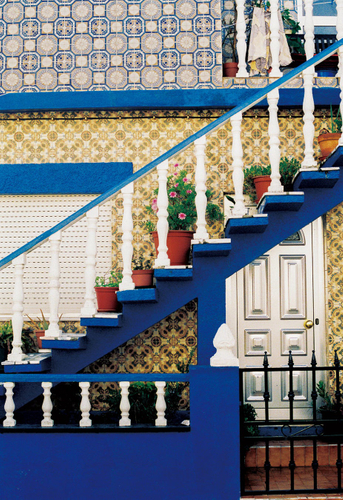 この港町ではよく霧がかかるので、仕事から帰ってきた漁師たちが見つけやすいように家がストライプに塗られている。海岸沿いから路地に入ったこの通りは美しいタイルで装飾された家が並んでいた。それぞれとても個性的で家主のセンスが光っている。ポストまで緑でセレクトされたこの家は、門をくぐると物語がはじまりそうな魅惑的な気配を漂わせていた。