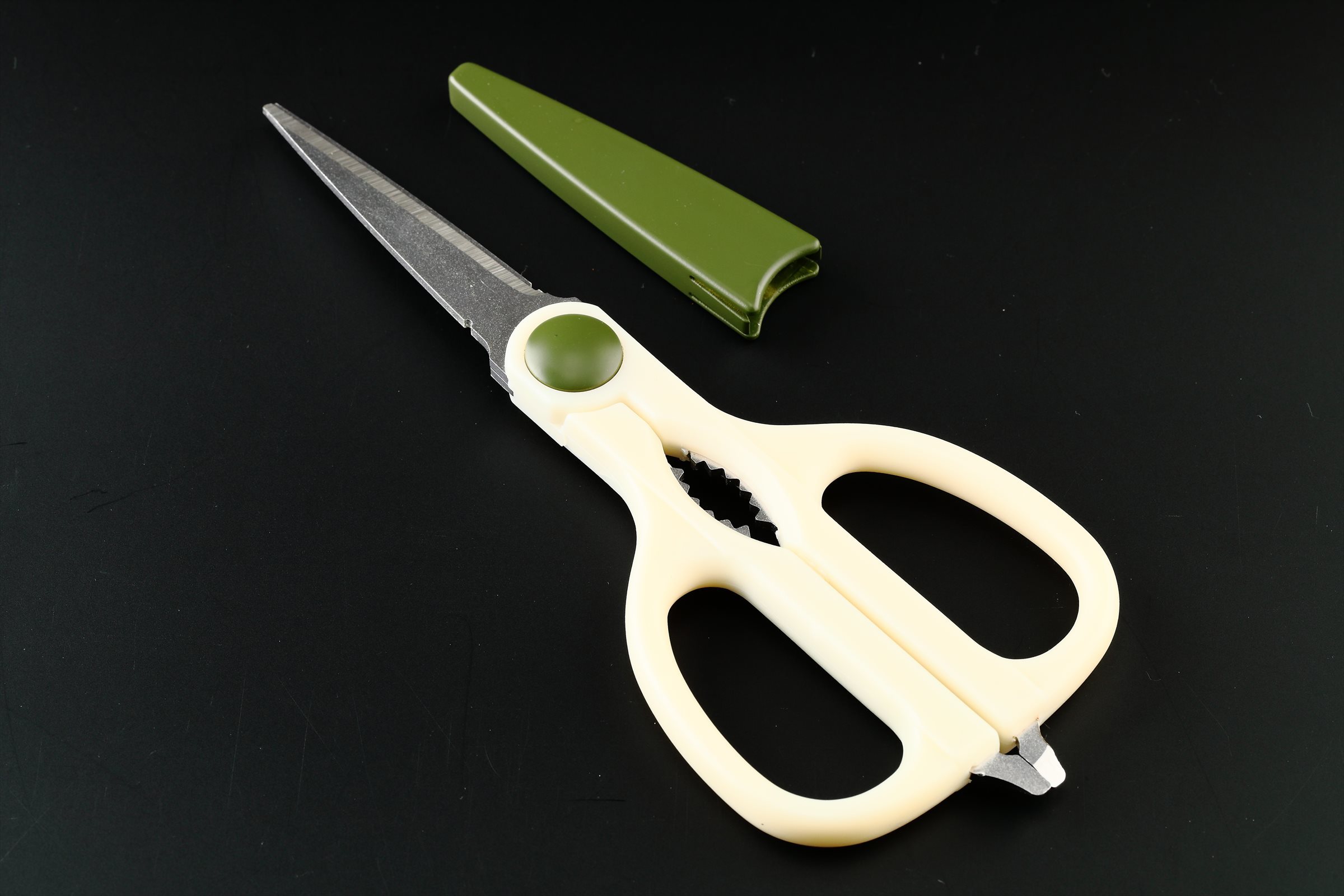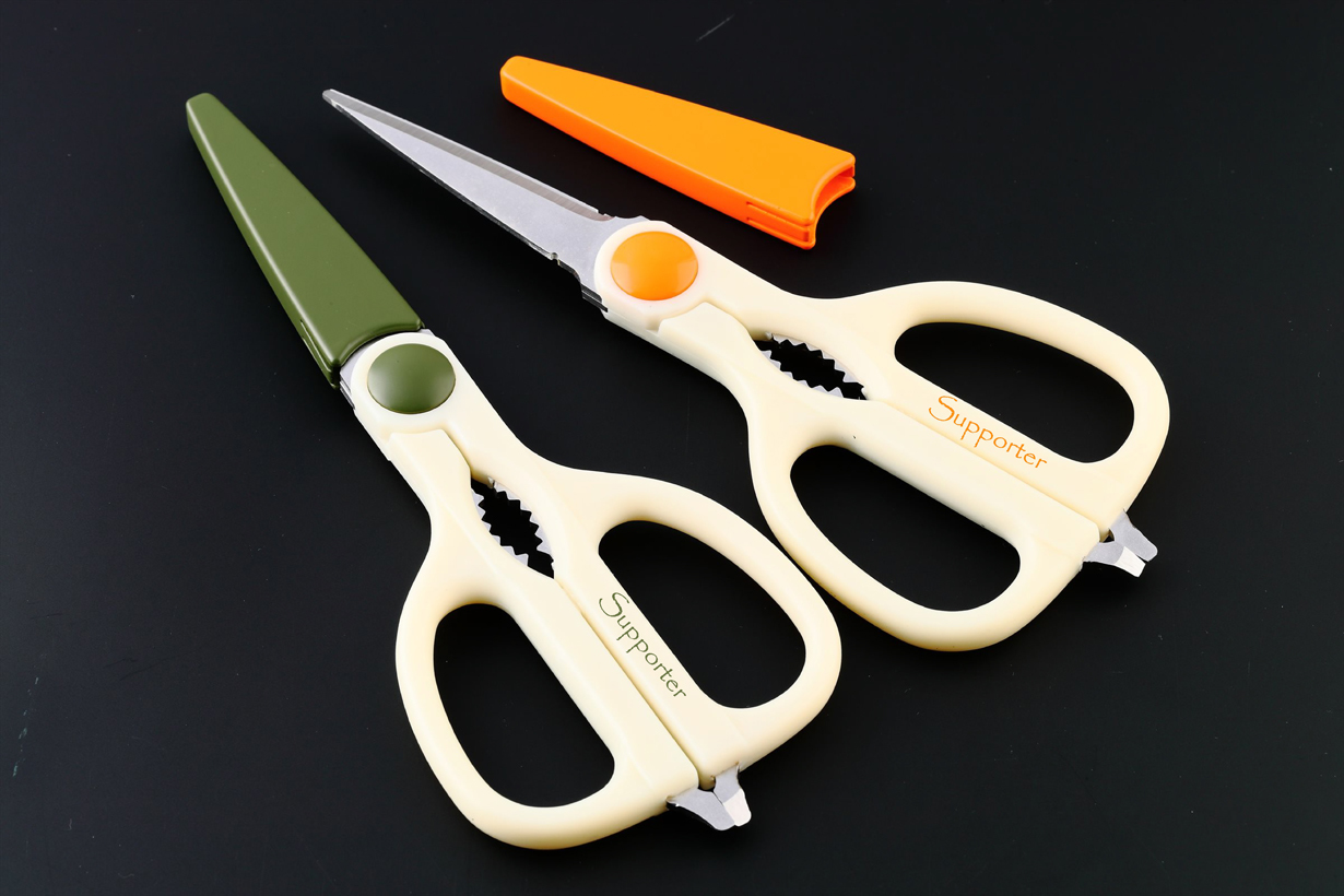 ハサミは、関市の刃物職人が1本1本丁寧に刃付けをしており、対象物をスムーズにカットする事ができ、また、キャップ付きのため、そのままバッグの中に入れてキャンプ場等、外出先に気軽に持ち運べます。