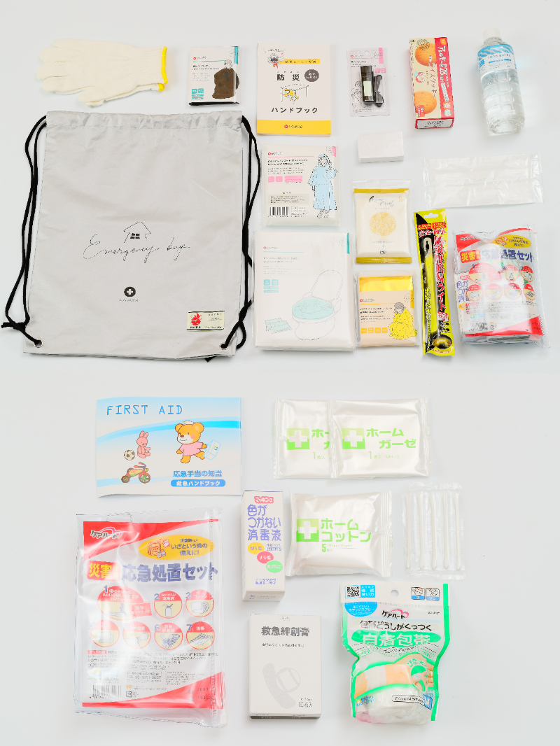 上記ハサミのリターン品の他、備えておくと安心できる防災セットを別途用意しております。
