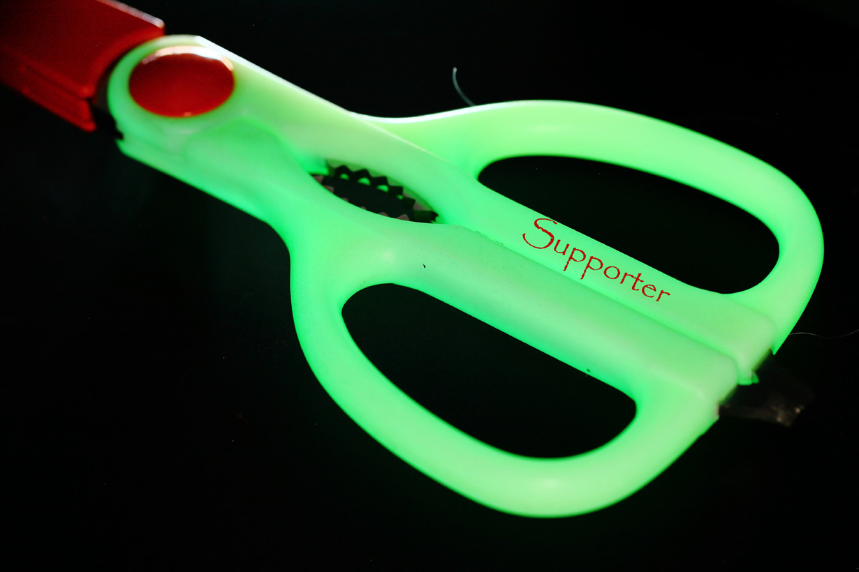 ※2. 暗闇で光る…ハサミの持ち手に蓄光素材を使っているため、暗闇で光ってハサミの在処がすぐにわかります。ただし、日中に明るい照明や太陽光があたっていないと蓄光機能を十分に活かすことができません。