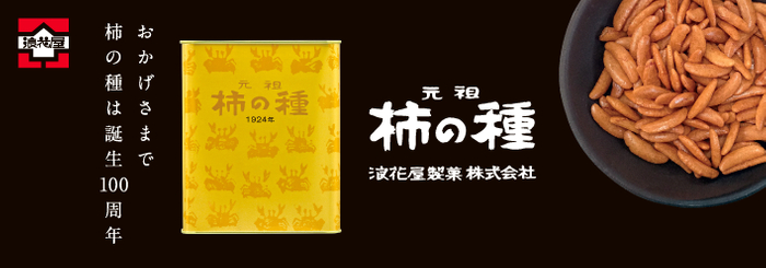 浪花屋製菓はメモリアルイヤーを彩る最後の商品として「元祖柿の種100年記念缶」を発売します。柿の種が特別な輝きを放つ100年ならではの商品を今年も引き続きお楽しみください。