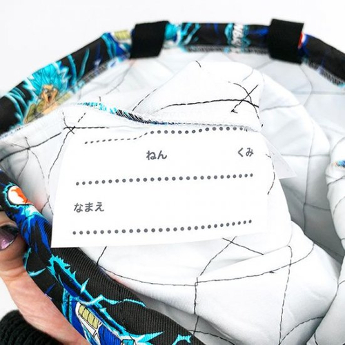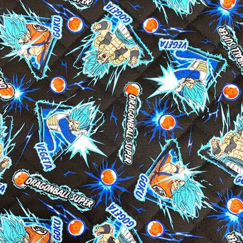ブラックのキルティング生地に悟空やベジータたちのカッコいい姿がデザインされています。