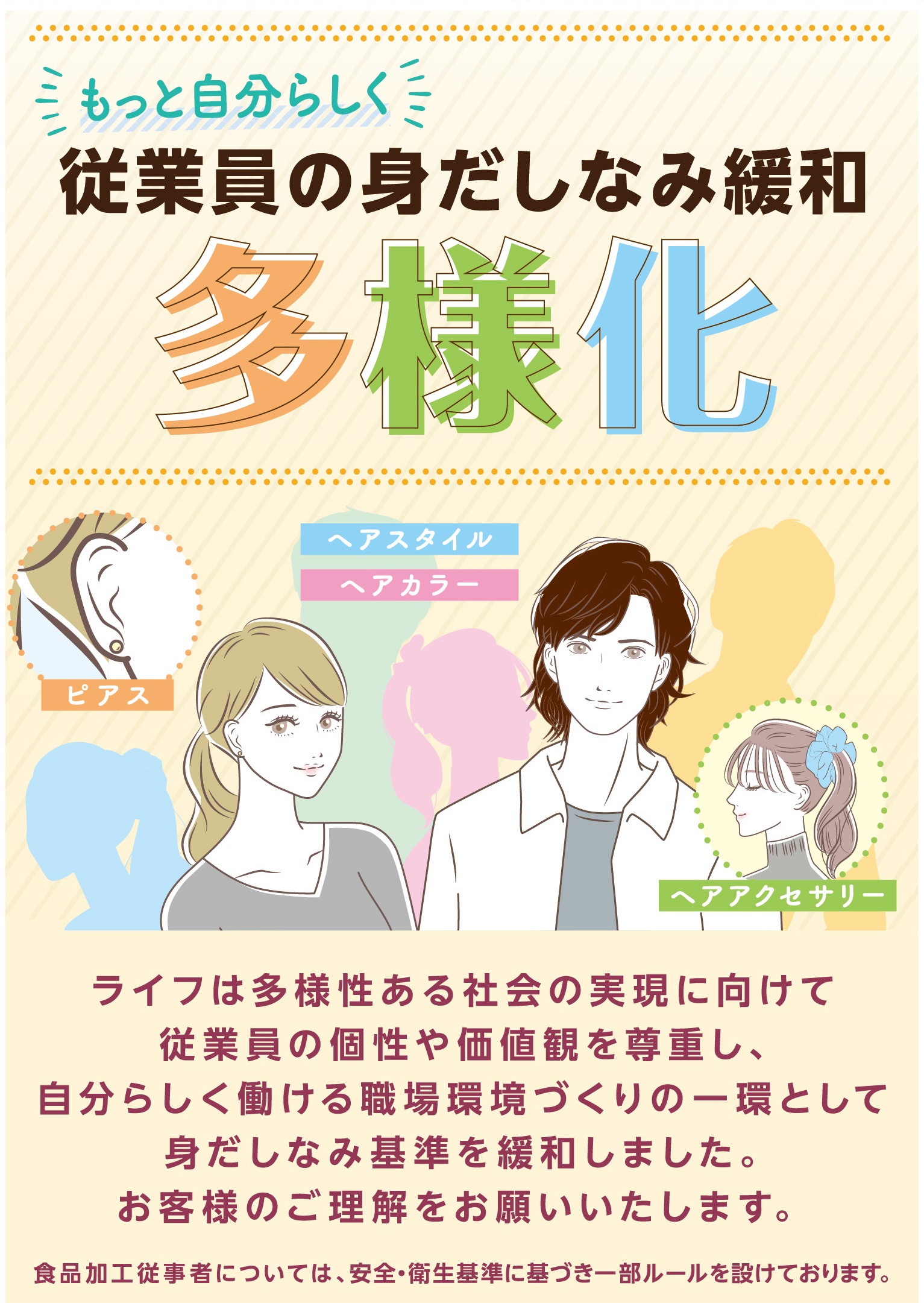 ライフ 従業員の身だしなみルール緩和のお知らせ