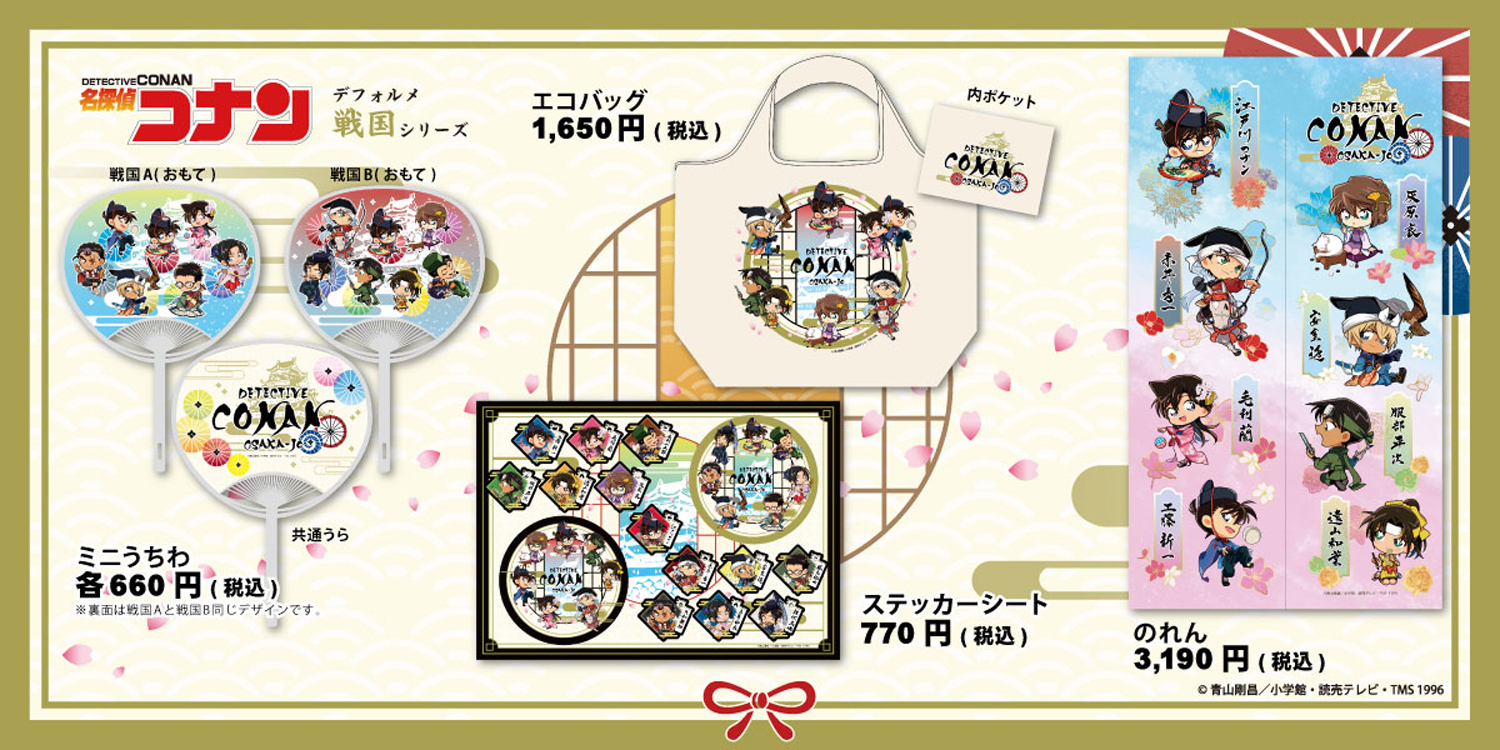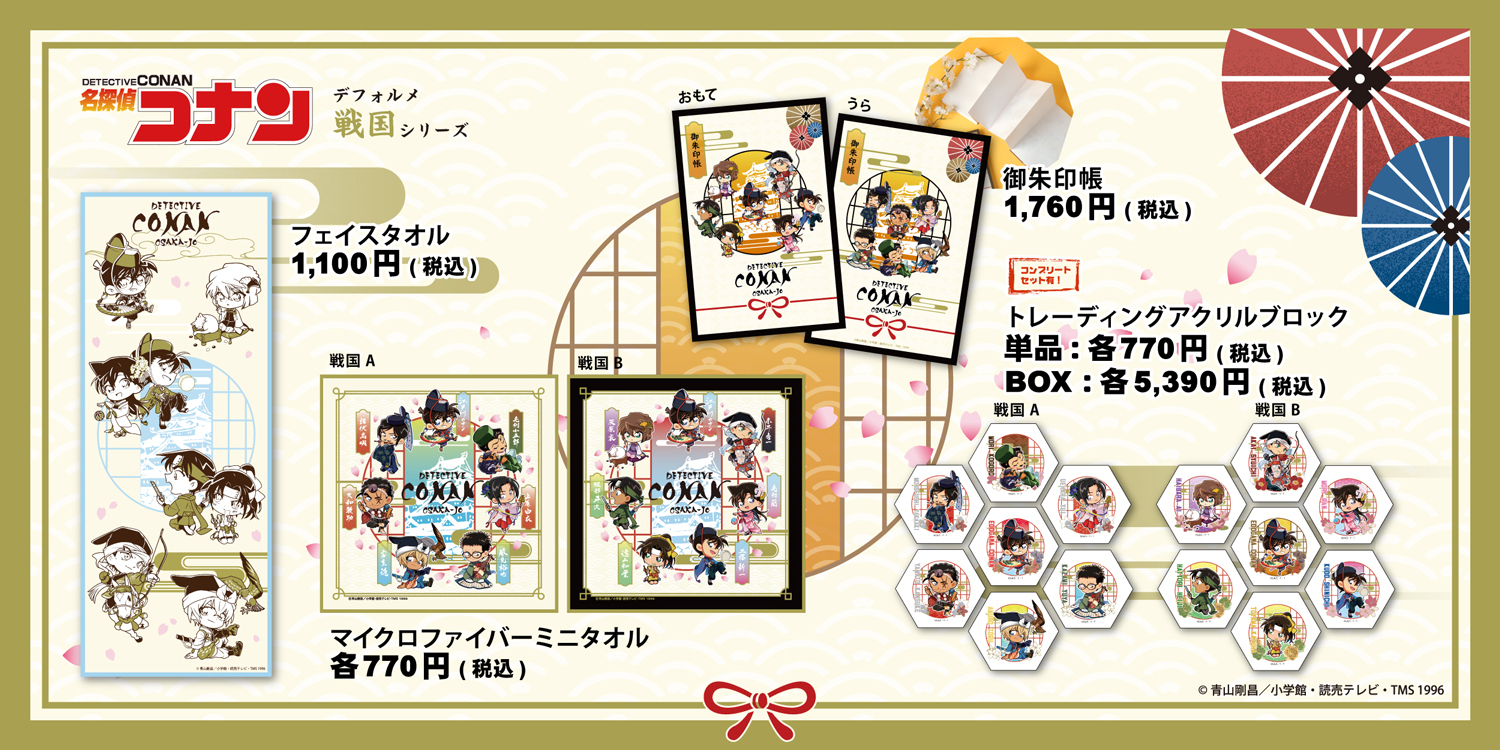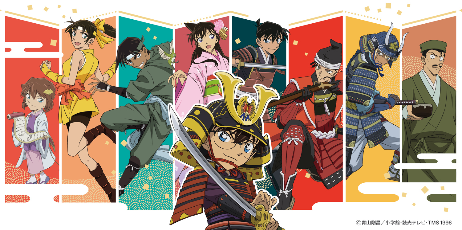 大好評の戦国時代の衣装を身にまとった描き下ろしビジュアルに、今年は「工藤 新一」「毛利 蘭」「毛利 小五郎」「遠山 和葉」「赤井 秀一」が登場。昨年の「江戸川 コナン」「灰原 哀」「服部 平次」「安室 透」と合わさりパワーアップした描きおろしビジュアル商品が発売!