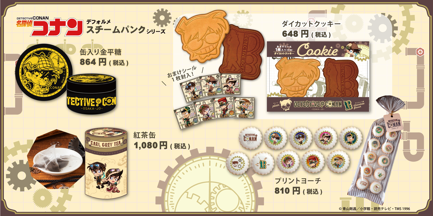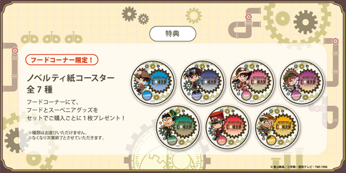 昨年も好評を博した戦国衣装のキャラクターに加え、スチームパンクの世界観をまとったキャラクター描き起こしも登場。また今回もコナンの世界観を存分に表現した催事限定コラボフードも販売いたします。