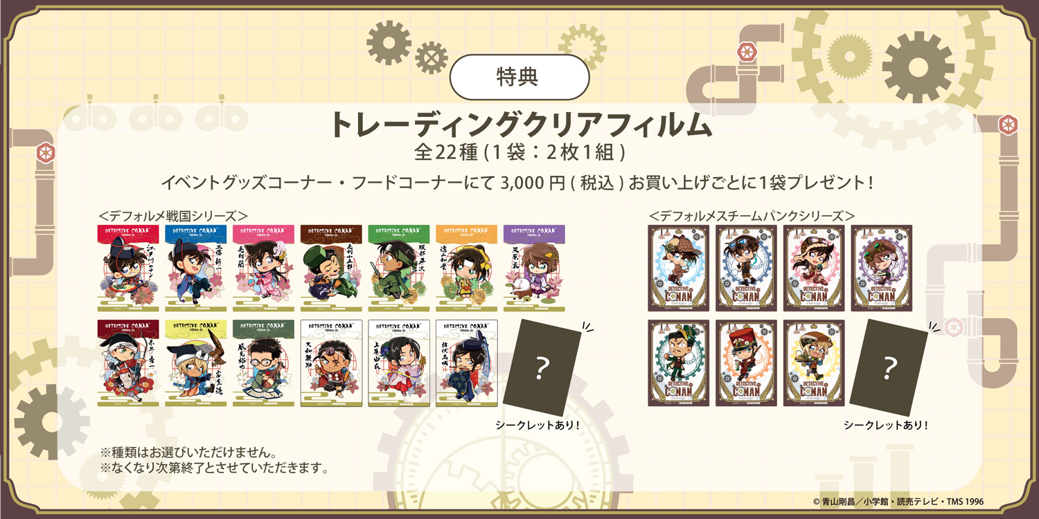 本イベントのグッズコーナー・フードコーナーにて3,000円(税込)ご購入ごとに、ノベルティとしてトレーディングフィルム(2枚1組封入・ブラインド仕様)を1袋プレゼント