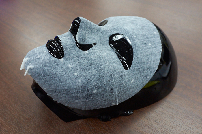 白いマスクを見やすいよう黒い顔をしていますが、ご覧のとおり、日本人女性の平均的な顔は、とても美人さん。彼女は、一日に何十枚フェイスマスクをのせても、疲れを見せないので、とても頼もしいんです。