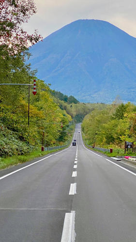 真っ直ぐな1本道の先にみえる羊蹄山が魅力で四季を問わず人気なビュースポットです。