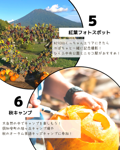 秋の羊蹄山や、ひらふ中央公園のかぼちゃと記念撮影ができます。
