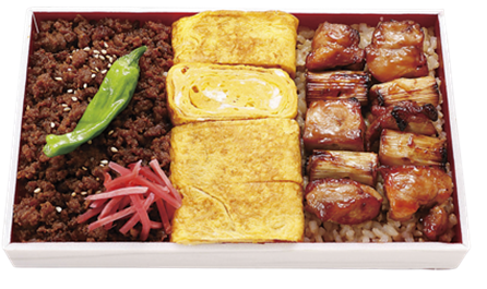 人気の焼鳥重をさらにブラッシュアップした、焼鳥とそぼろの2種類の鶏肉を楽しめるお弁当。