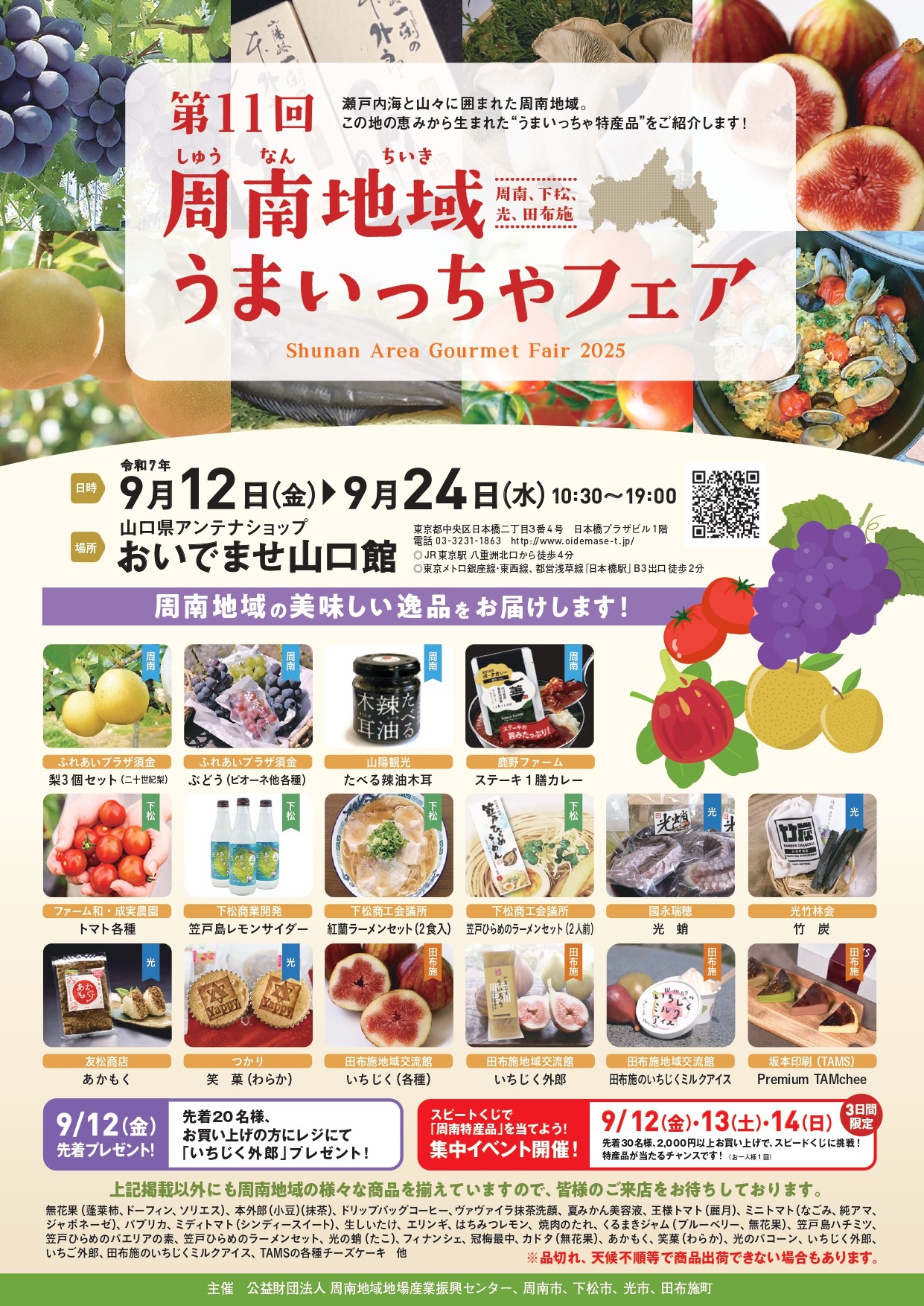 東京にある山口県アンテナショップ「おいでませ山口館」にて、瀬戸内海と山々に囲まれた周南地域ならではの「うまい!」を販売します!