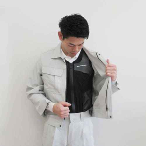 暑さ対策として、アシストスーツ全面にメッシュ生地を使用しました。通気性が良く、暑い夏でもムレにくいため、快適に作業できます。