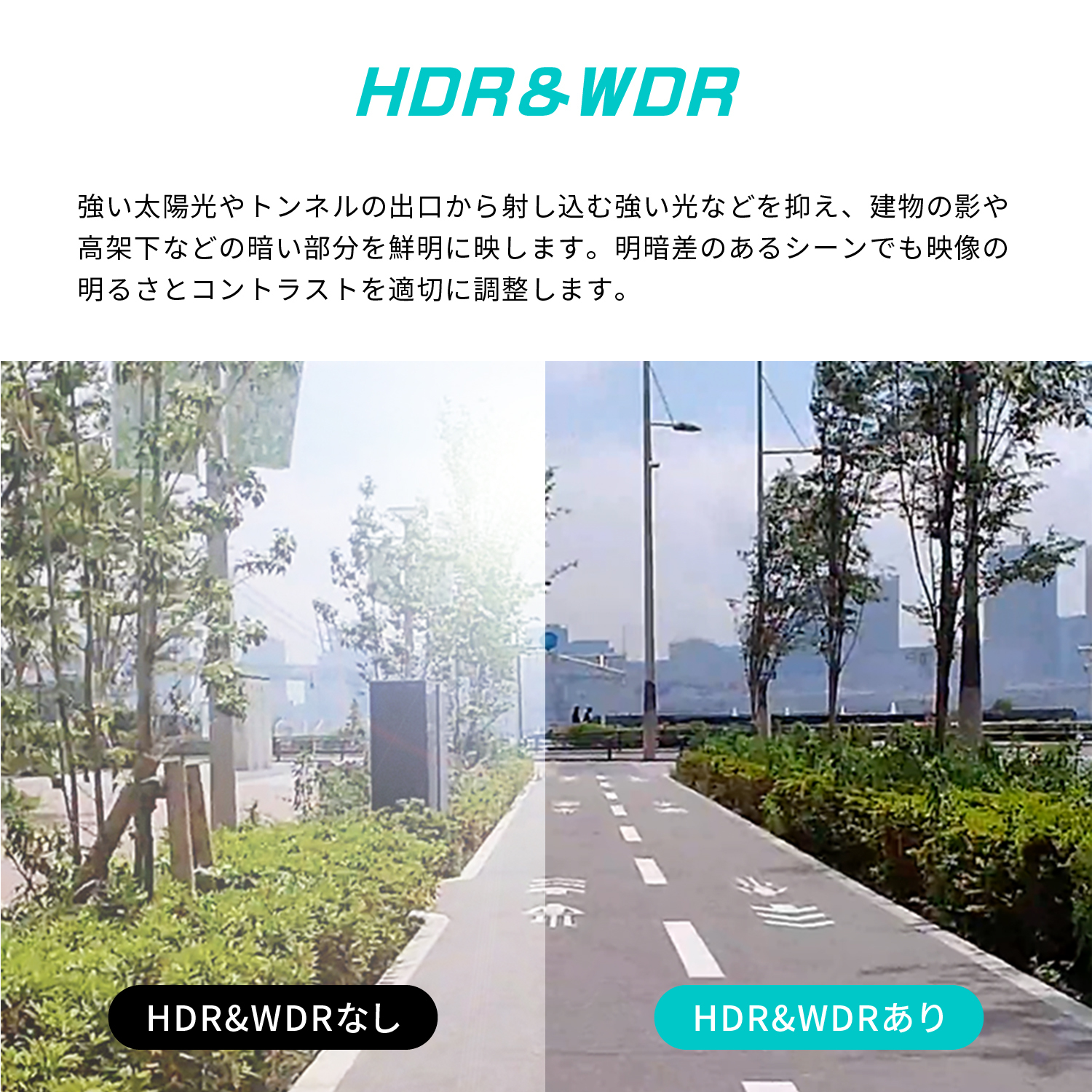 ● HDR・WDR機能により、白飛びや黒つぶれを防ぎ、夜間の視認性も向上します。