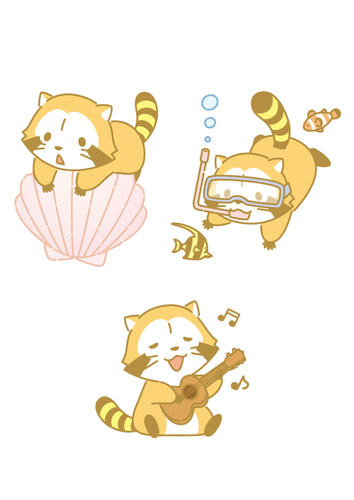 大人女子から人気を集めている貝殻をモチーフにし、「ラスカル」が貝殻に乗ったり、シュノーケリングをする姿をデザインしました。