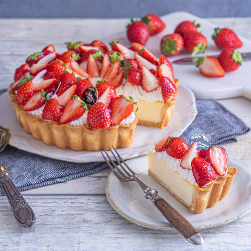【商品詳細】じっくりと焼き上げたベイクドチーズタルトに美しい赤色の果実と濃厚な味わいの埼玉県産のあまりんを飾りました。