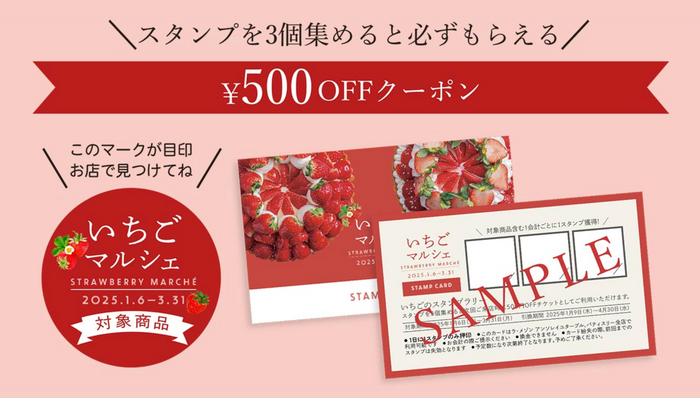 甘酸っぱいいちごのタルトが多数登場する『いちごマルシェ』と、クーポンがもらえるスタンプカードキャンペーンを実施します。
