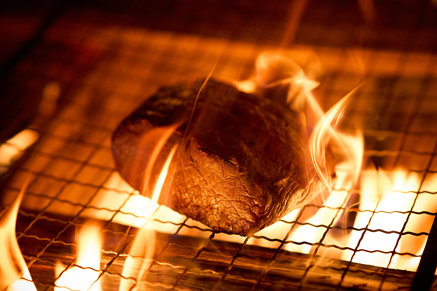 自在堂の料理は、火とともにあります。イタリア・ピエモンテで伝統的な薪火料理を学んだシェフ徳田が、時には燃え上がる炎で、時には静かな熾火で、素材に合わせて火の温度と距離を調整し、食材の持ち味を最大限に引き出します。