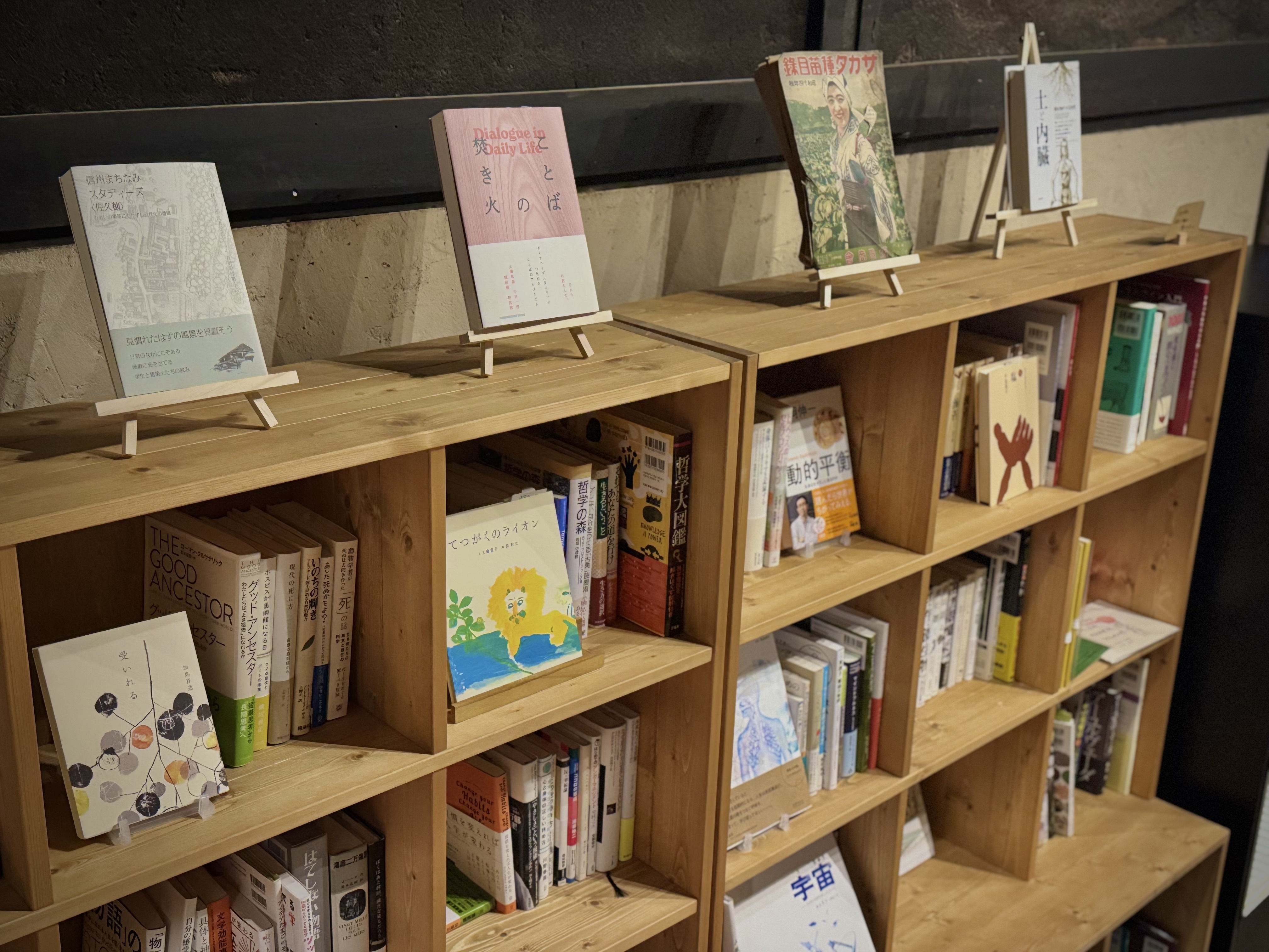 レストランの他、店内にはナチュラルワインや自家製はちみつ、季節のジェラート、生活雑貨や古本が並ぶショップも併設。