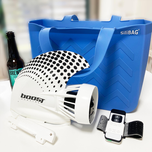 「Boost Fin(ブーストフィン)」は、手元のボタン一つで操作が可能です。最大時速約16キロメートルを繰り出せるので沖に出ることも用意に、パドルが楽になることで波を簡単にキャッチできます。